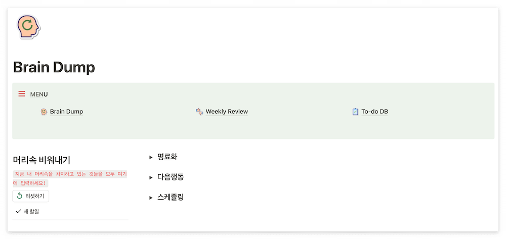 '브레인 덤프 (Brain Dump)' 페이지