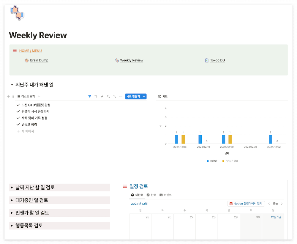 '위클리 리뷰 (Weekly Review)' 페이지