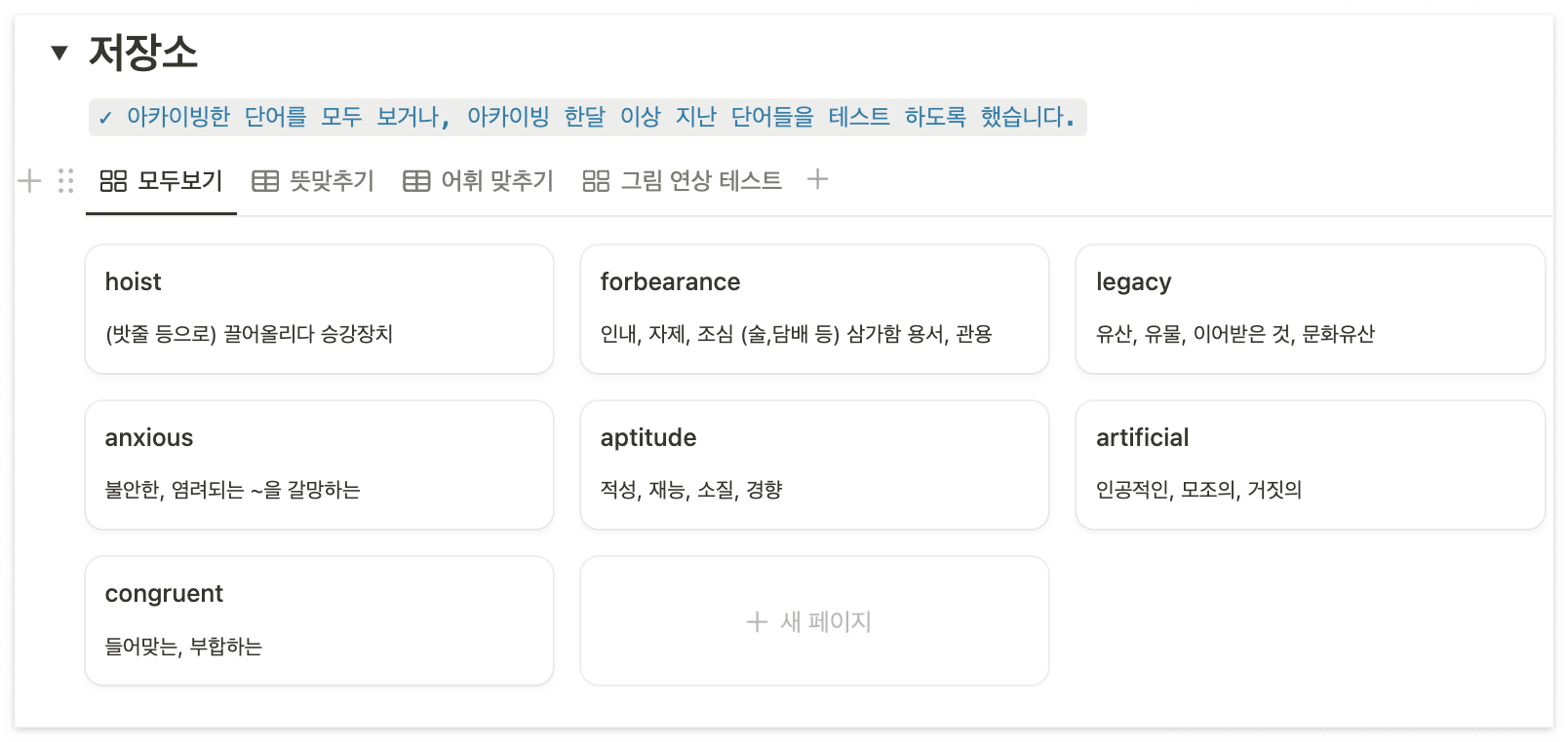- 완벽 암기 단어 보관