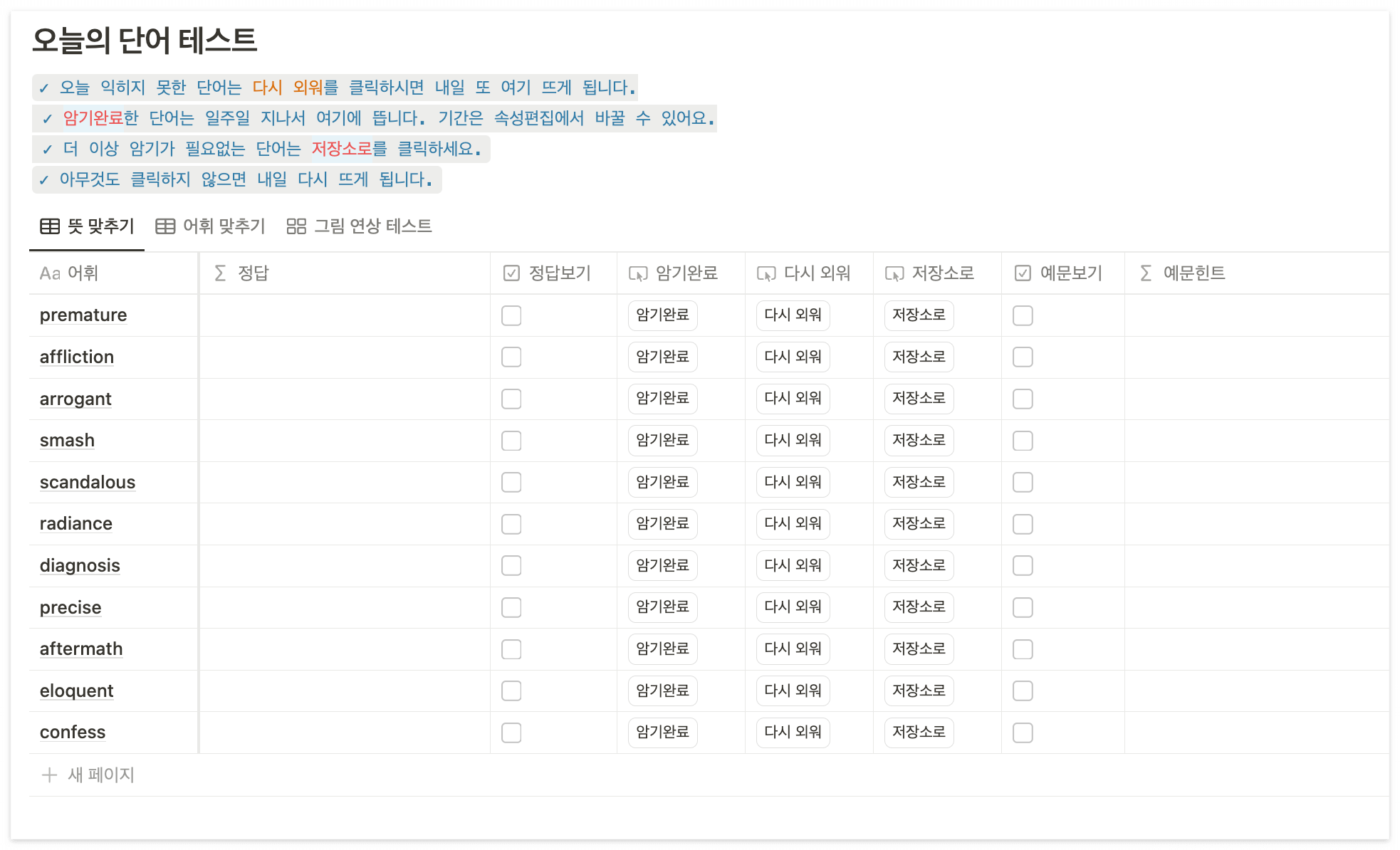 어떤 방법을 써도 외워지지 않는 단어 암기! 이 템플릿을 쓰면 반 강제적으로 외울 수밖에 없도록 만들었습니다.^^