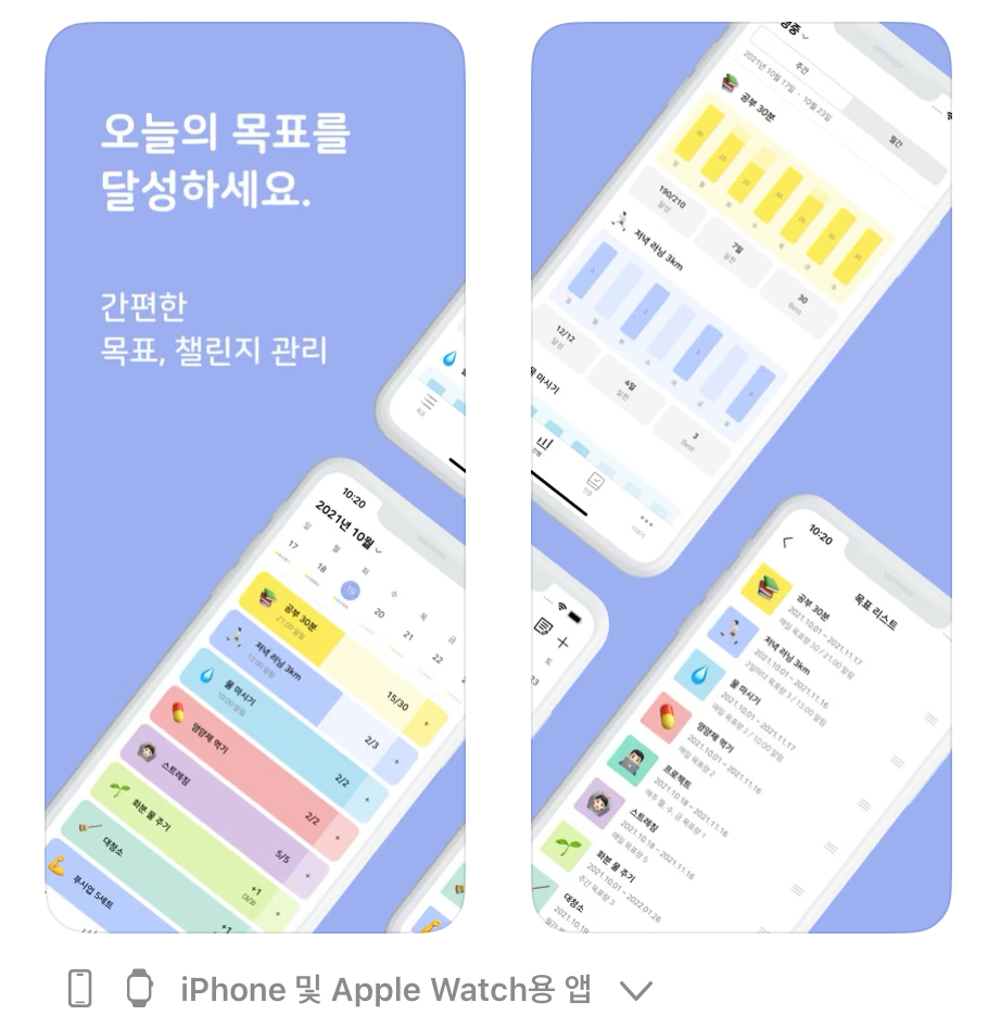 물론 제가 찾은 어플 <오늘의 목표> 또한 부족한 부분이 있지만 직관적으로 루틴을 빠뜨리지 않고 체크할 수 있다는 면에서 후한 점수를 주고 싶습니다. 애플워치에서도 직관적으로 체크할 수 있다는 점도 매우 마음에 들고요.