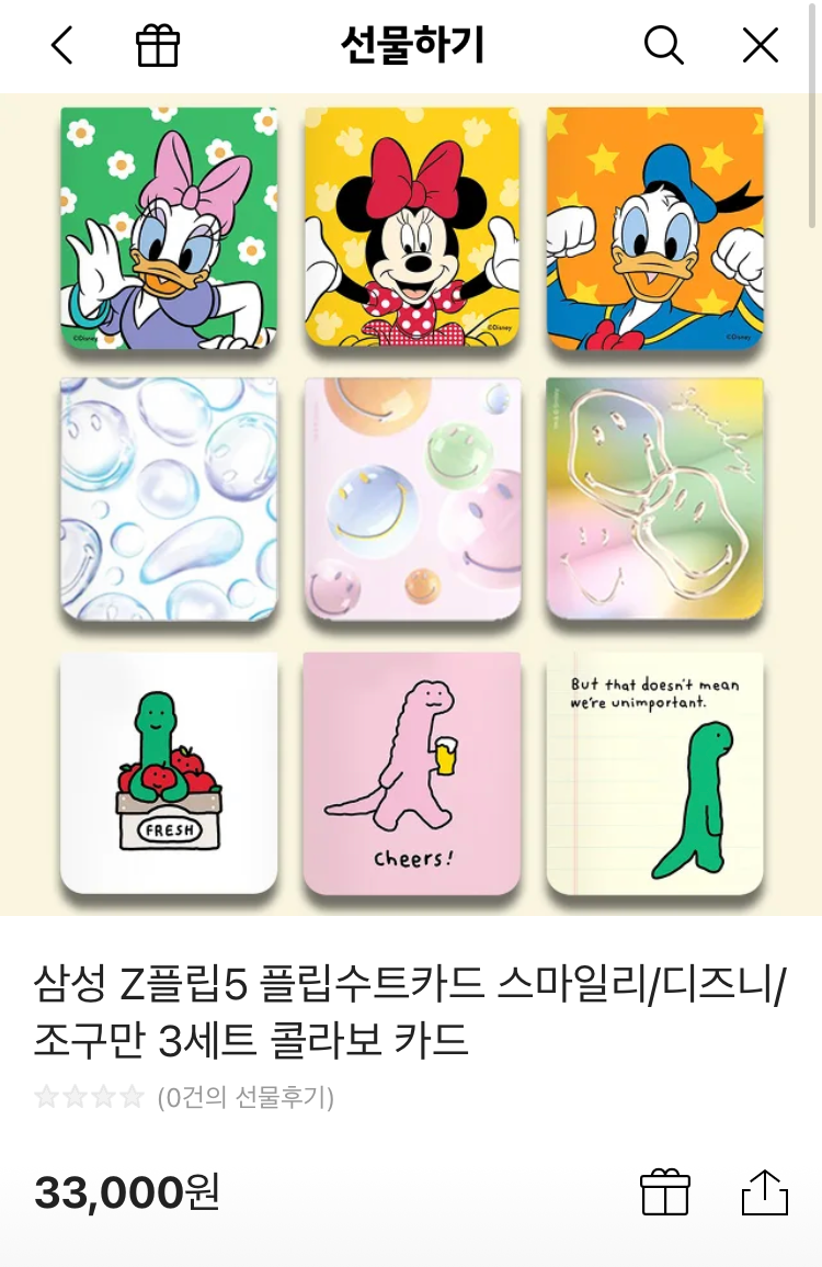 현재 삼성닷컴에서 플립수트 카드를 세트로 판매하고 있고, 무신사, 29CM, 카카오톡 선물하기에서도 세트 판매 중입니다. 빠르게 구매 원하시는 분들을 위해 링크 남겨 놓을게요.