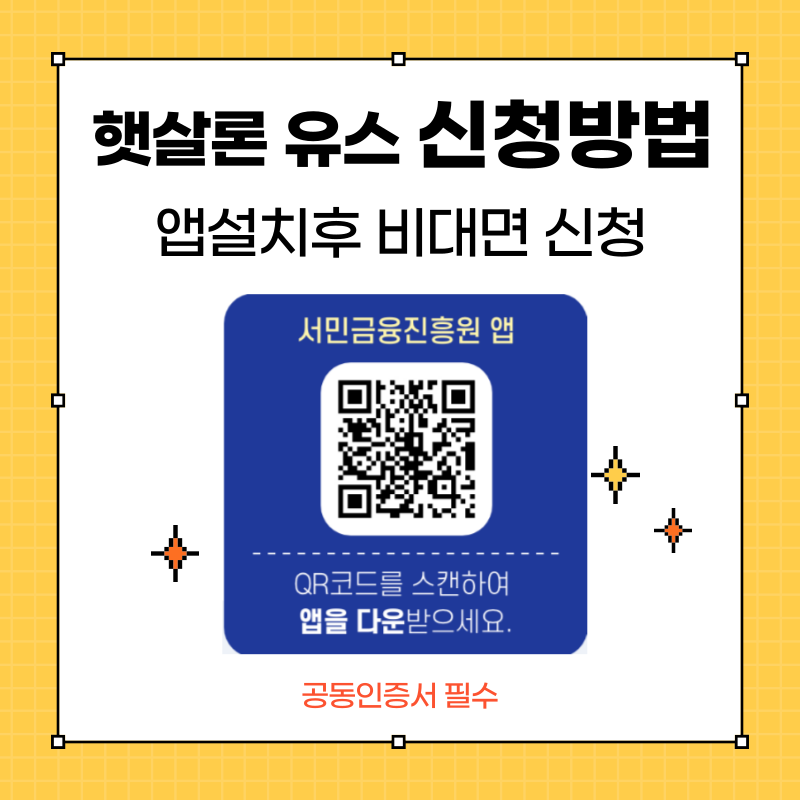 요즘은 찾아가지 않고 앱으로 비대면 신청만 받는다고 하니 오히려 편리하죠. 앱 설치하고 안내대로 따라만 하면 되더라고요. 서민금융진흥원 사이트에서 살펴봤는데 준비 서류가 꽤 많아 보였지만 일단 앱 깔고 신청 절차를 따라 하니 어떤 서류를 첨부하라고 안내를 해주기 때문에 일단 신청부터 하시면 좋습니다. 단 공동인증서가 반드시 필요하다는 점이 조금 불편했어요. 금융인증서나 카카오인증서와 같은 간편 인증으로는 불가능하니 미리 공동인증서(구, 공인인증서)를 준비해 두시기 바랍니다.