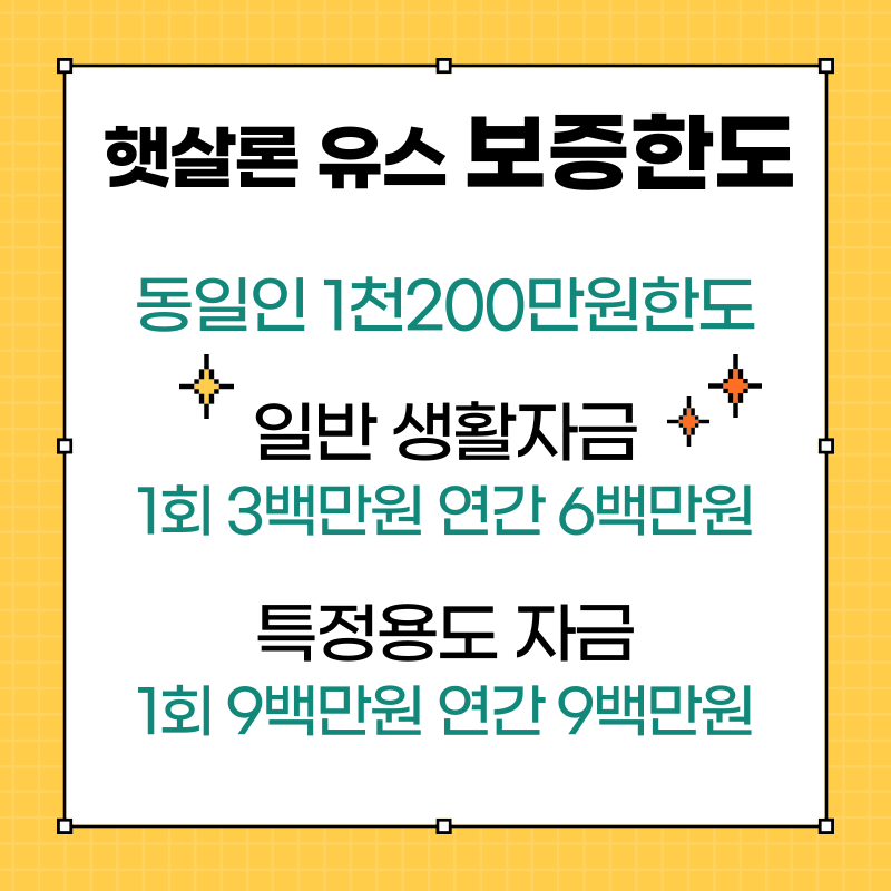 주의하실 점은 이 금액을 대출받고 모두 갚았다 하더라도 다시 대출이 안되니 참고하세요. 예를 들어 일반 생활자금으로 300만 원을 대출하고 모두 갚은 뒤라도 1천200만 원이 아닌 900만 원까지만 더 대출받을 수 있습니다.